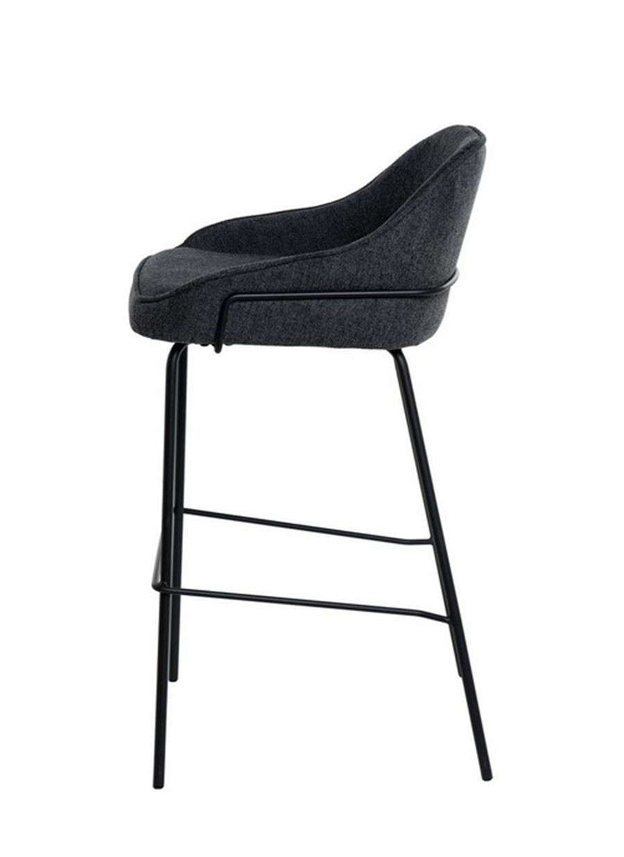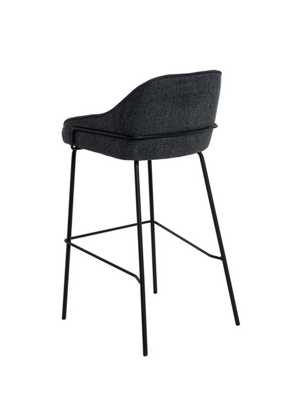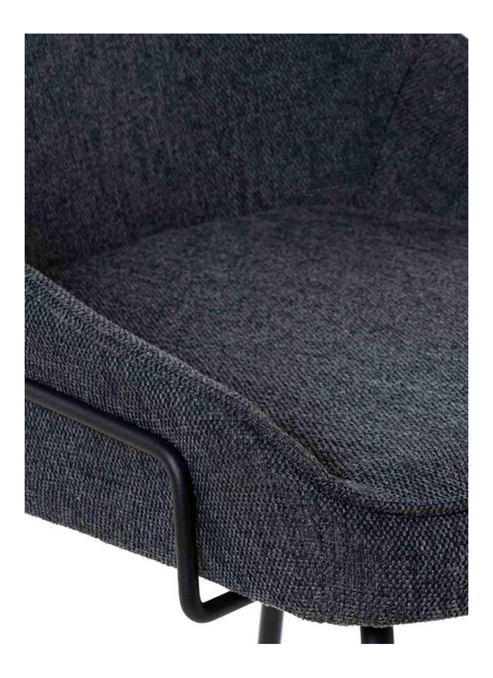 El asiento está tapizado en tela de color gris oscuro, proporcionando un tono neutro y sofisticado. La estructura y las patas de metal añaden un toque moderno y resistente.
