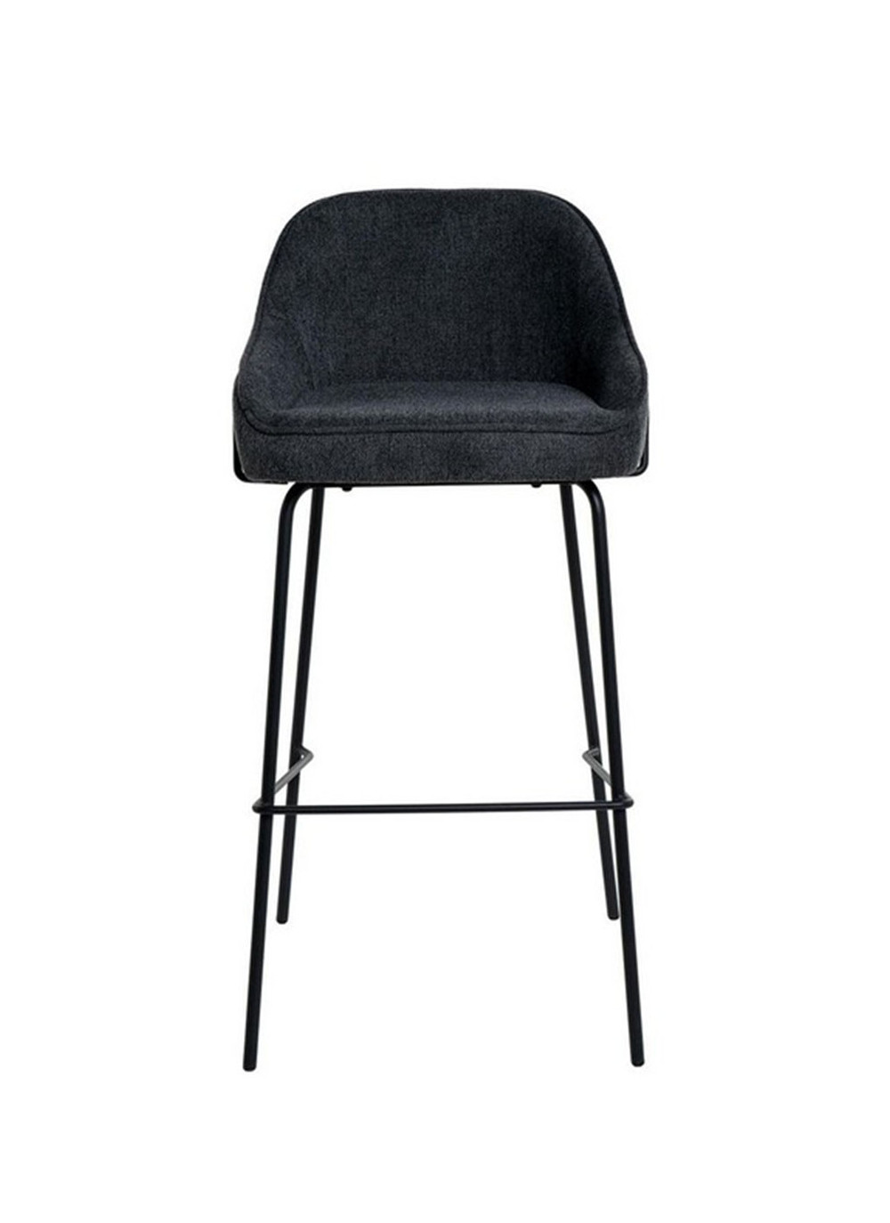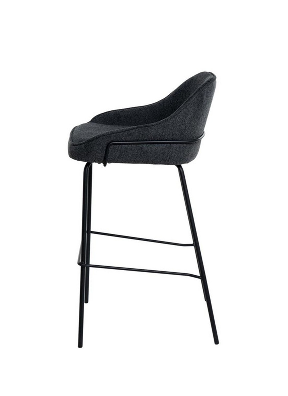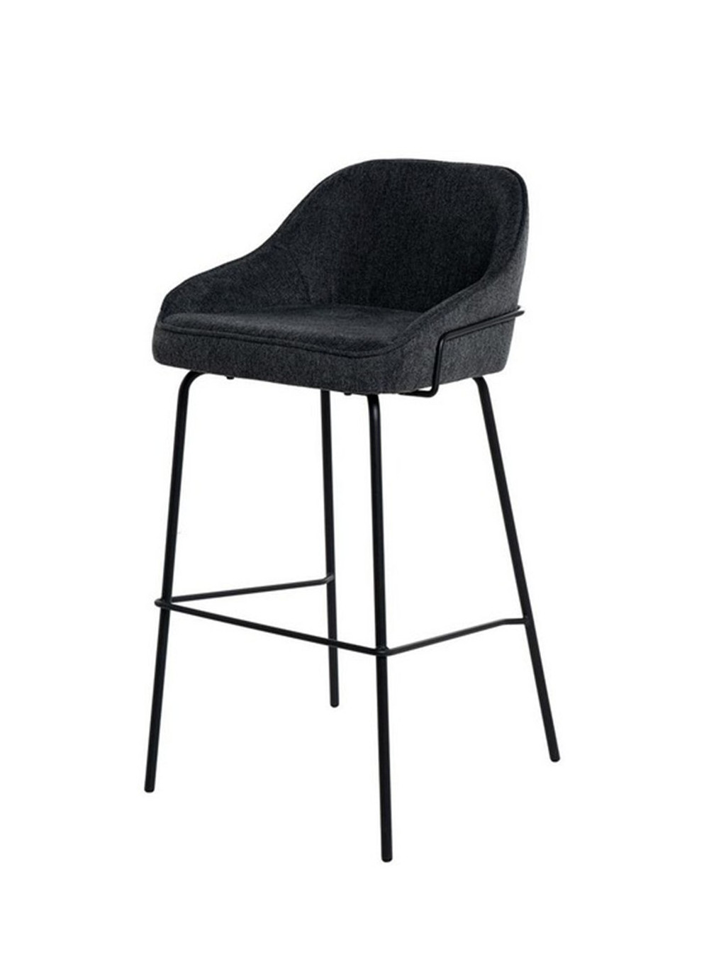 El asiento está tapizado en tela de color gris oscuro, proporcionando un tono neutro y sofisticado. La estructura y las patas de metal añaden un toque moderno y resistente.