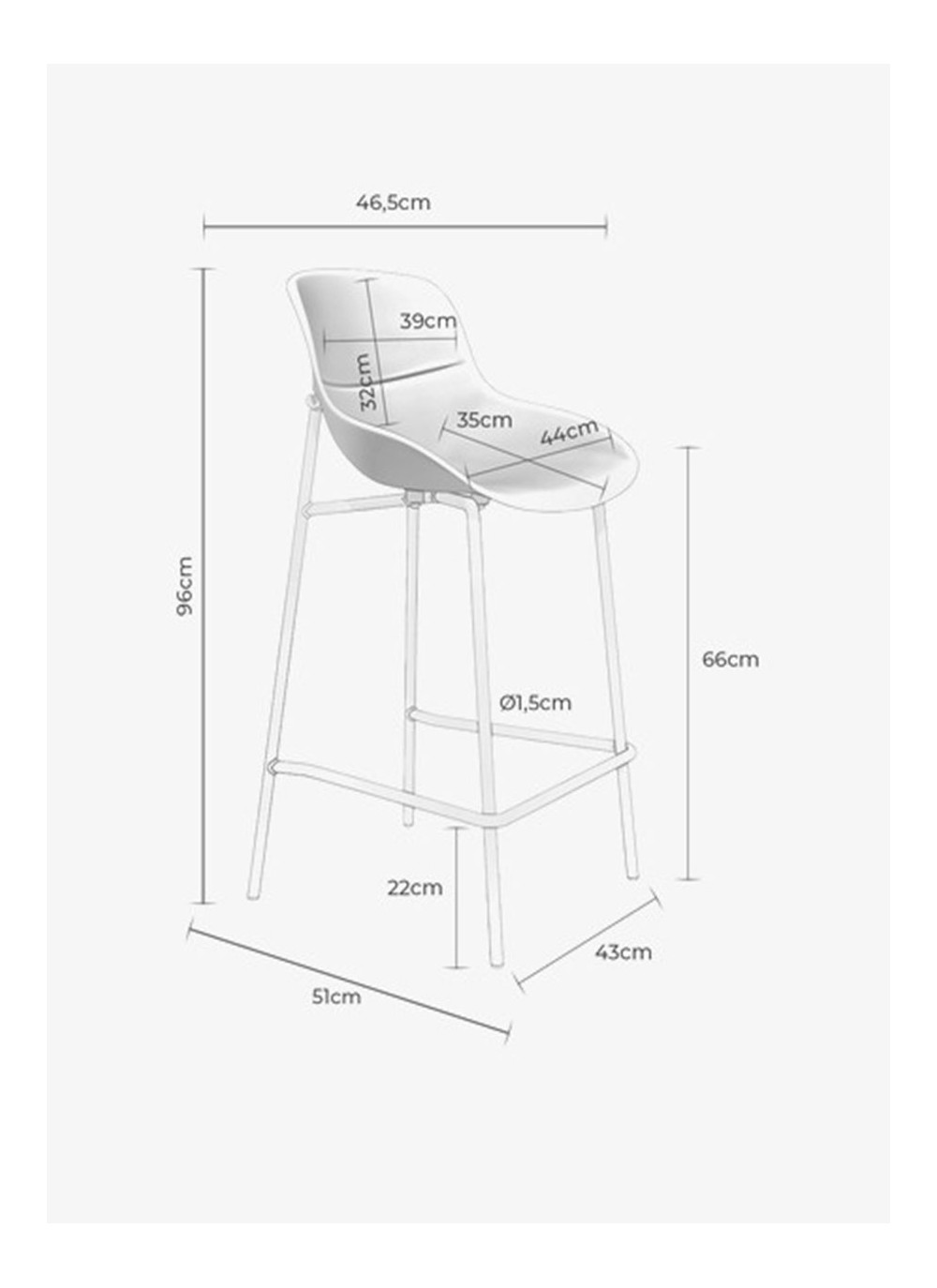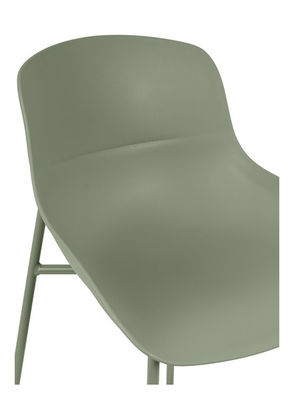 Su asiento de polipropileno de bordes suaves se posa sobre una estructura metálica esbelta, logrando un equilibrio entre funcionalidad y diseño contemporáneo.